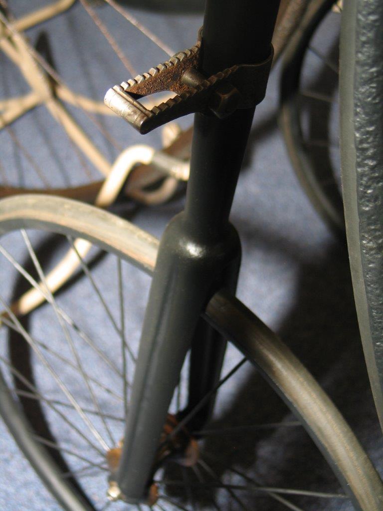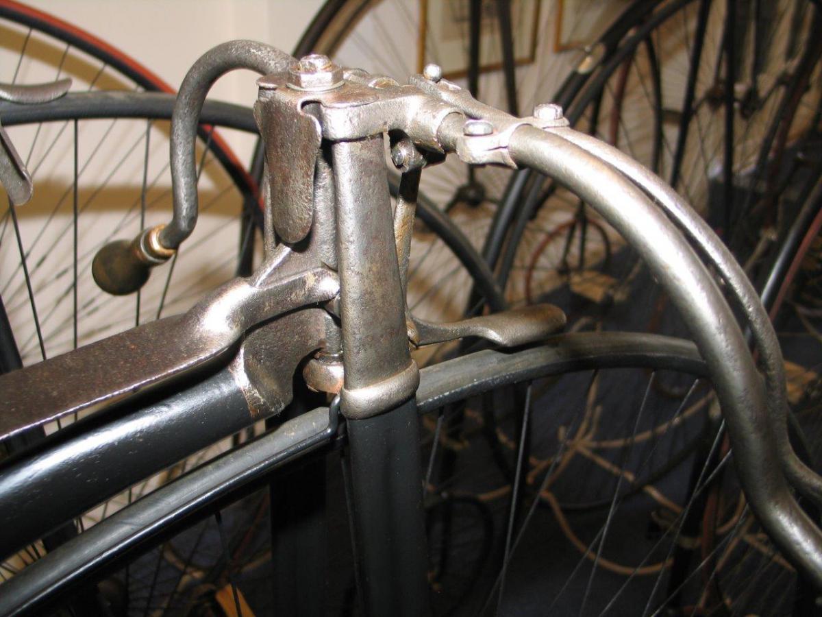 This Bayliss, Thomas Duplex Excelsior is the most luxurious model of the Bayliss, Thomas ordinaries represented on this website. As I descibe in the introduction on Bayliss, Thomas (click for link) this is the later model of The Victor DEHF, with detachable handlebars, fluted forks and patent spring. The model of handlebars makes me think this bicycle was built in 1887 or even later.